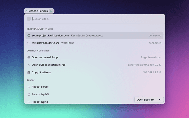 Source repo: https://github.com/KevinBatdorf/laravel-forge-raycast