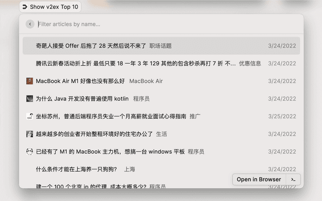 You can quickly access the 10 most popular posts of v2ex at the moment. Note: The v2ex home page can be reached by visiting https://www.v2ex.com/ through your browser. For users in China, proxy access is supported.